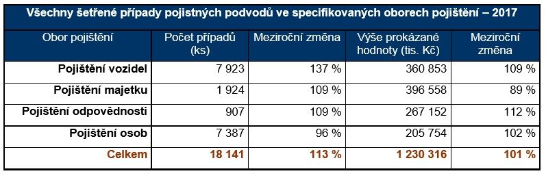 Počet prověřovaných pojistných podvodů v roce 2017 narostl o 13 %. Pojišťovny uchránily před podvodníky více než miliardu korun.