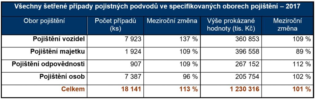Počet prověřovaných pojistných podvodů v roce 2017 narostl o 13%. Pojišťovny uchránily před podvodníky více než miliardu korun.